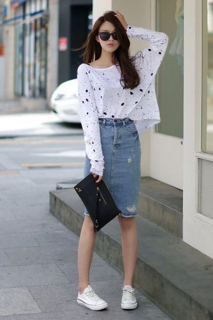 กระโปรงที่มีความยาวระดับหัวเข่าคือคีย์เวิร์ด กระโปรงทรงนี้ฮิตมากค่ะ เพราะสามารถใส่ได้ทุกโอกาศ ไม่โป๊จนเกินไปและเรียบร้อยจนเกินไป และยังหาแมทช์กับรองเท้าได้ง่ายด้วยค่ะ เหมาะกับวันที่ต้องการความรีแลคซ์ สำหรับบางคนสามารถใส่ไปทำงานได้ก็ยิ่งได้ลุคเก๋ๆ ที่ได้ฟีลทะมัดทะแมงปนเปรี้ยวจี๊ดอีกด้วย